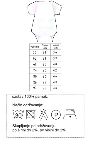 • Veličine: Od broja 56 (za novorođenčad) do veličine 92.