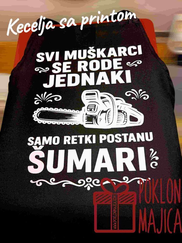 Kecelja sa natpisom za šumara mototesteraša drvoseču …. sa šaljivim natpisom.