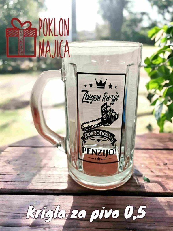 - Kvalitetno i masivno staklo: Krigla je zapremine 0,5l, standardnog oblika koji savršeno leži u ruci, izrađena od debelog stakla koje duže zadržava temperaturu pića.