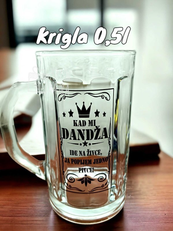 Ništa ne upotpunjuje trenutke opuštanja kao hladno pivo posluženo u pravoj, masivnoj krigli. Naša personalizovana krigla za pivo od 0,5l nije samo obična čaša – to je unikatan detalj koji svako ispijanje pretvara u poseban događaj. Krigle sa natpisom su već godinama jedan od najpopularnijih personalizovanih poklona.