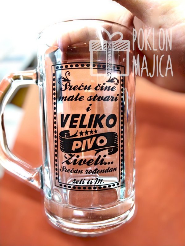 Ništa ne upotpunjuje trenutke opuštanja kao hladno pivo posluženo u pravoj, masivnoj krigli. Naša personalizovana krigla za pivo od 0,5l nije samo obična čaša – to je unikatan detalj koji svako ispijanje pretvara u poseban događaj. Krigle sa natpisom su već godinama jedan od najpopularnijih personalizovanih poklona.
