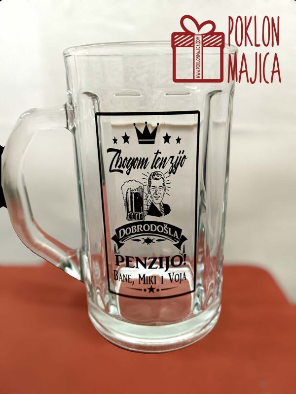 Krigla za pivo sa natpisom za penzionera 🙂