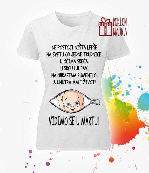 - Idealan poklon za buduću mamu: Tražiš poklon za „Baby Shower“ ili želiš da obraduješ trudnu drugaricu ili suprugu? Trudnička majica sa unikatnim natpisom je najoriginalniji znak pažnje koji će svaka buduća mama s ponosom nositi.