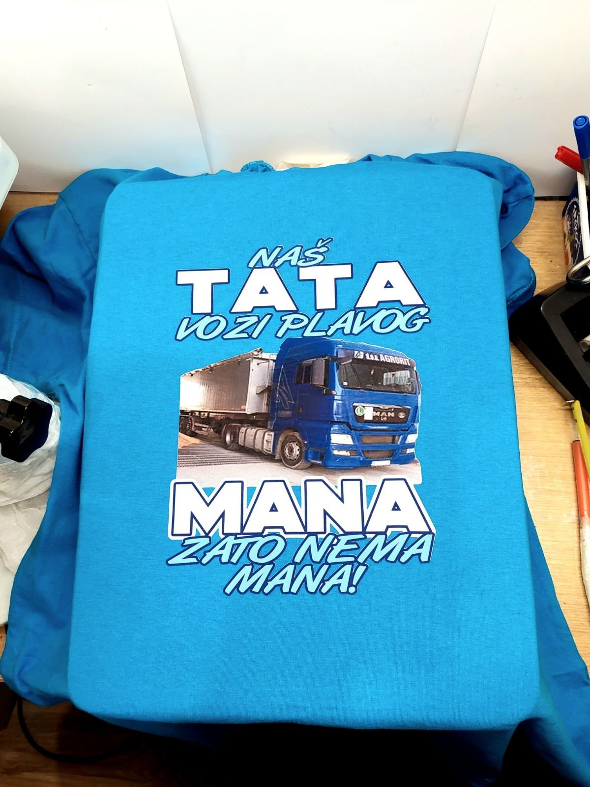 Muška majica sa printom za vozace kamiona, kamiondzije – Nas tata vozi plavog MANA