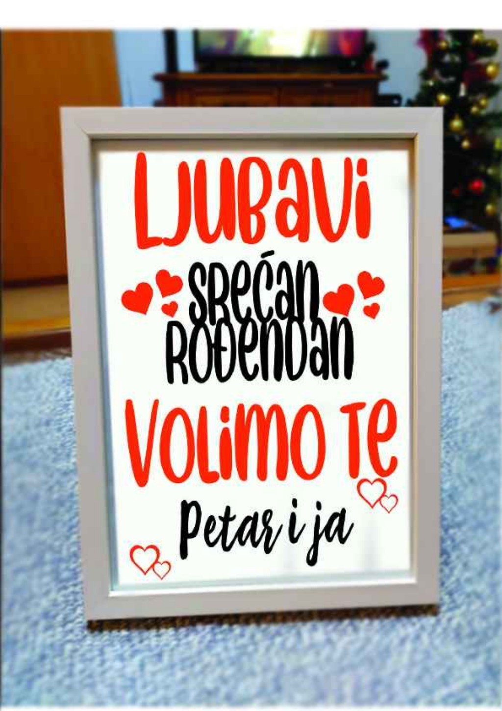 Sve što treba da uradite je da nam pošaljete tekst ili motiv koji želite na ramu. Naš tim će se pobrinuti da dizajn bude savršeno uklopljen i spreman da postane deo vašeg enterijera.