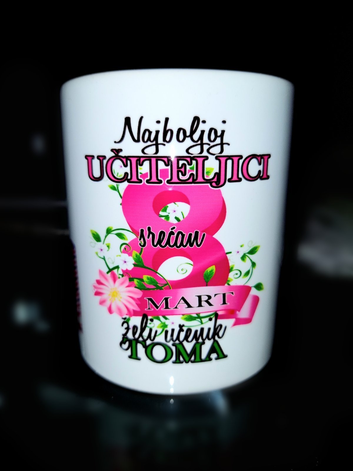 Solja sa natpisom za uciteljicu – Srecan 8. Mart