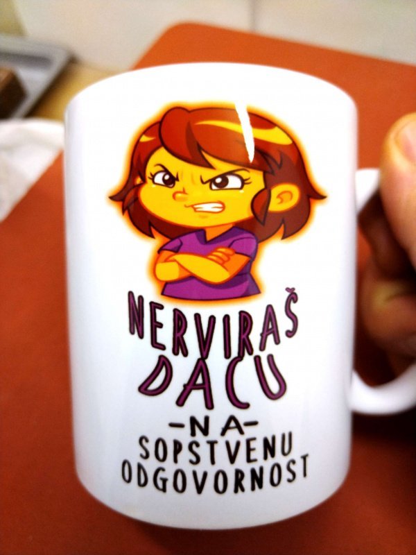 Šolja sa natpisom za rodjendan drugarici 🙂 Nerviraš Dacu na spostvenu odgovornost 🙂