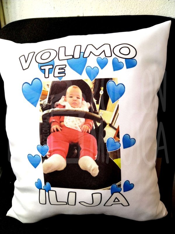 Jastuk sa slikom i natpisom – Volimo te Ilija!